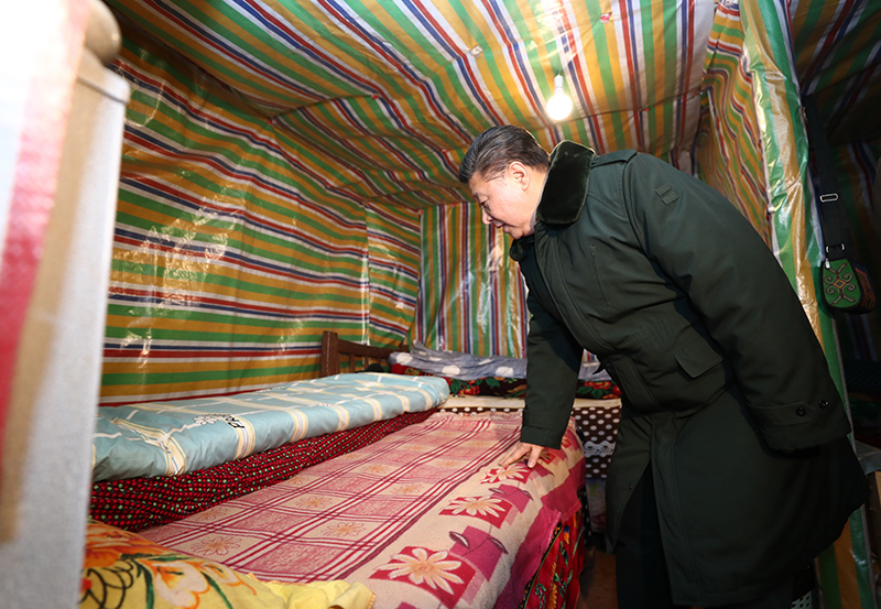 这是2月11日上午,习近平在凉山彝族自治州昭觉县三岔河乡三河村贫困户吉好也求家中看望。新华社记者 鞠鹏 摄