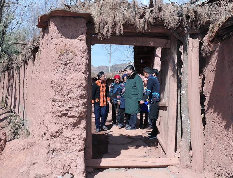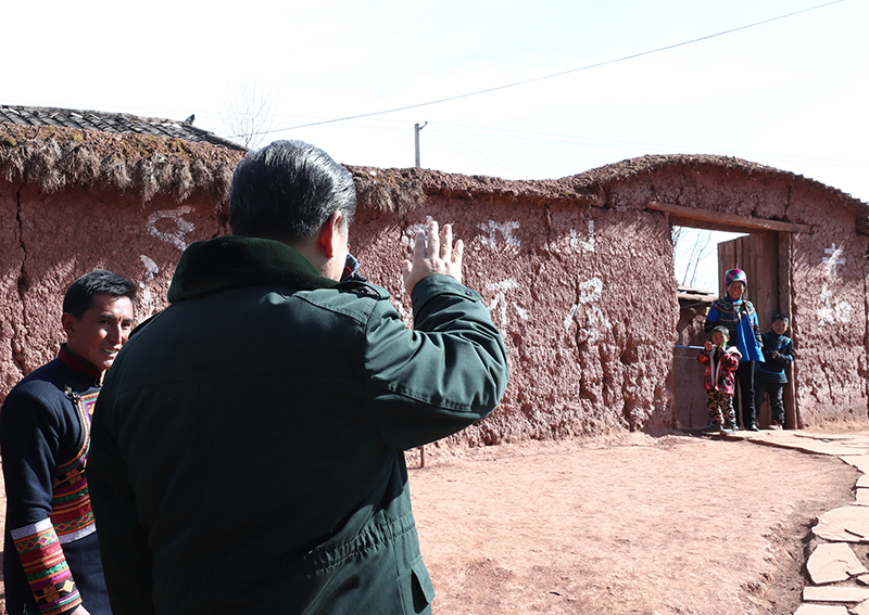 这是2月11日上午,习近平在凉山彝族自治州昭觉县解放乡火普村了解易地扶贫搬迁和彝家新寨建设情况。新华社记者 鞠鹏 摄