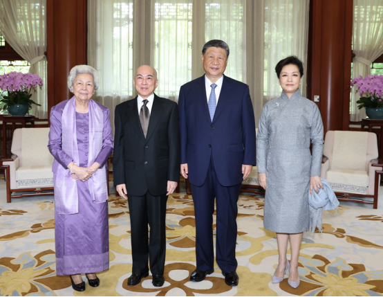 习近平夫妇会见柬埔寨国王西哈莫尼和太后莫尼列