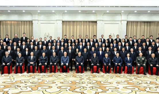 9月23日下午,中共中央总书记、国家主席、中央军委主席习近平在乌鲁木齐亲切接见新疆生产建设兵团领导班子成员及有关方面负责同志,并同大家合影留念。新华社记者 申宏 摄