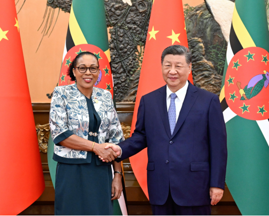 习近平指出,多米尼克是中国在加勒比地区的好朋友、好伙伴。建交20多年来,两国始终相互尊重、平等相待,政治互信不断巩固,各领域交流合作蓬勃开展,人民友谊日益深厚,树立了不同社会制度、不同大小国家间友好合作的典范。中方愿同多方一道,推动两国关系迈向更高水平,更好造福两国人民。