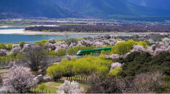 2025年4月2日,复兴号列车穿行在拉林铁路林芝段。新华社记者 晋美多吉 摄