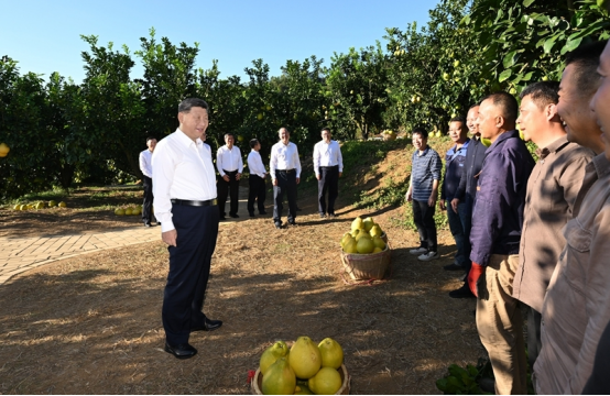 11月7日至8日,中共中央总书记、国家主席、中央军委主席习近平在广东考察。这是7日下午,习近平在梅州市梅县区雁洋镇南福金柚种植基地考察。新华社发(肖翊 摄)