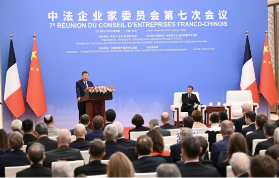 12月4日中午,国家主席习近平在北京同法国总统马克龙共同出席中法企业家委员会第七次会议闭幕式并致辞。