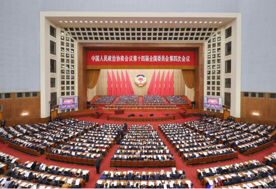 3月4日下午,中国人民政治协商会议第十四届全国委员会第四次会议在北京人民大会堂开幕。新华社记者 刘彬 摄