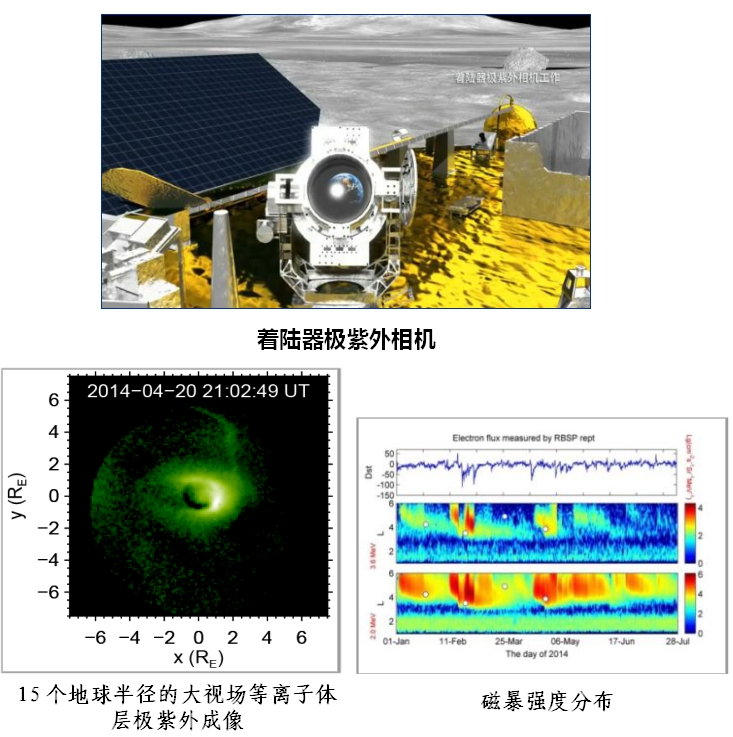 国际上首次研制了极紫外相机,在月面上对地球周围15个地球半径的大视场等离子体层进行极紫外观测,获取1300多幅地球等离子体层图像数据。首次发现了地球等离子体层边界在磁层亚暴的影响下发生凸起,一是揭示了太阳活动对地球空间环境的影响;二是确认了地球等离子体层的尺度与地磁活动强度呈反相关关系,进而提出了等离子体层的空间结构受到地球磁场和电场约束及控制的最新观点。