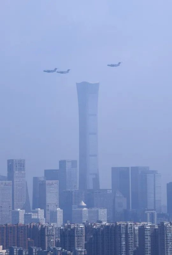 9月3日,纪念中国人民抗日战争暨世界反法西斯战争胜利80周年大会在北京隆重举行。这是运输机梯队接受检阅。新华社记者 戴翘楚 摄