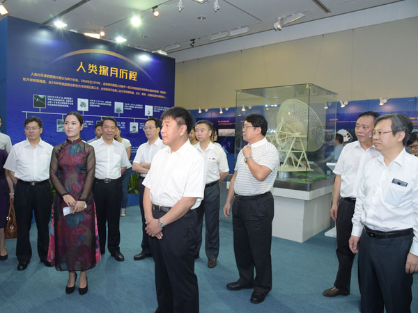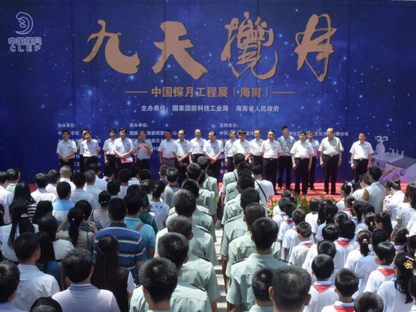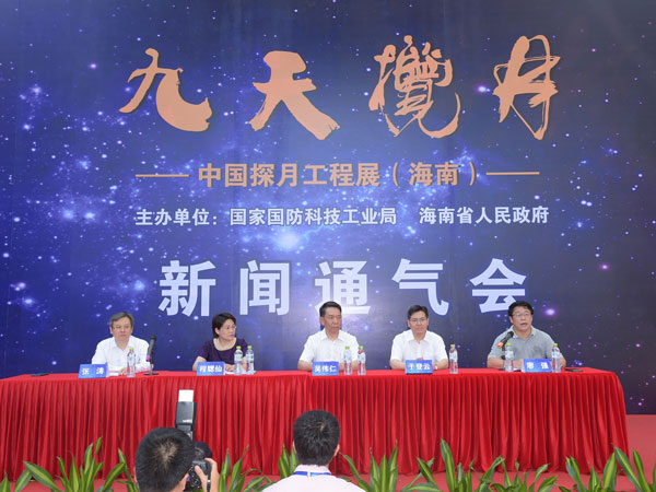 2015年5月15日,由国家国防科技工业局和海南省人民政府共同主办的“九天揽月——中国探月工程展”(海口站)在海南省博物馆精彩亮相,这是探月工程展2015年全国巡展的首站,此次展览将持续至6月1日,之后在国内其他省份继续巡展。国防科工局党组成员王承文、海南省副省长李国梁出席开幕式。 王承文在开幕式上致辞时表示,实施探月工程,是党中央高瞻远瞩,着眼我国社会主义现代化建设全局,根据世界科技发展大势,为推动航天事业发展、促进科技进步和创新、提高综合国力,作出的重大战略决策。自2004年正式启动以来,中国航天坚持创新驱动发展,探月工程取得“四战四捷”,开启了中国人走向深空、探索宇宙奥秘的时代,在人类攀登科技高峰征程中不断刷新中国高度。 王承文强调,在不久的将来,我国新一代长征五号运载火箭将托举探月工程嫦娥五号探测器升空,文昌将成为当代奔月“嫦娥”的新的故乡。在探月工程后续任务中,我们将与海南省有关方面一起,努力攀登,攻坚克难,共同创造中国月球探测活动新的业绩。 此次展览由中国探月工程、月亮文化艺术、科普互动体验、航天遥感应用等展区组成,展品不仅包括众多高仿真模型和探月题材的艺术作品,如嫦娥三号着陆器和“玉兔号”月球车的1:1高仿真模型、嫦娥一号卫星、长征三号系列运载火箭、长征五号运载火箭等模型,以及艺术名家创作的月形紫砂壶、嫦娥奔月汉白玉雕塑、书画作品等,而且包括我国探月工程已实施的嫦娥一号、二号、三号和再入返回飞行任务中的发射、绕月、落月、返回等环节的大量珍贵实物,如嫦娥三号着陆器和月球车携带的五星红旗、嫦娥三号月基天文望远镜、嫦娥二号CCD立体相机等,全方位呈现了我国探月工程的发展历程和重要成就。 为丰富展览内容,增进观众对航天事业的了解,海口站展览增加了嫦娥五号探测器今后在海南实施发射任务等内容,同时增设了航天遥感应用展区,该展区通过影像图等,集中展示了我国遥感卫星、应用卫星的重要成果,并首次展出了我国高分辨率对地观测系统高分一号卫星拍摄的海南省影像图和高分二号卫星拍摄的海口市影像图等内容。 在科普互动展区,观众络绎不绝,踊跃体验操控“玉兔号”月球车模型、通过虚拟天文望远镜观看月球面貌、测量自己在太阳系各行星上的不同重量等项目。此外,现场播放的嫦娥一、二号卫星、嫦娥三号探测器、再入返回飞行器发射镜头集锦以及3D电影等珍贵影像,也吸引了众多观众驻足观看。 展览期间,探月工程代表团与海南省有关方面举行会谈,就探月工程、海南省航天发展、推动航天合作等方面交换意见。国防科工局还组织探月工程总设计师吴伟仁、嫦娥三号任务巡视器系统副总设计师贾阳等专家赴琼,与海南政界、科技界进行深入交流,并在海南大学和海南中学举行科普报告会。 海口站展览由中国科学院、中国航天科技集团公司、中国航天科工集团公司、中国电子科技集团公司、中国西昌卫星发射中心、北京航天飞行控制中心、中国遥感应用协会协办,国防科工局新闻宣传中心、探月与航天工程中心,海南省国防科学技术工业办公室承办。 “九天揽月——中国探月工程展”是我国探月工程实施十多年来,首次以国家名义举办的主题展览及系列交流活动。此前,展览于2014年分别在香港、澳门和四川成都举办,吸引了数十万观众参观,激发了公众关心支持航天事业的热情,通过“航天热”“探月热”,营造了崇尚科学、探索未知、追求创新的良好舆论氛围。