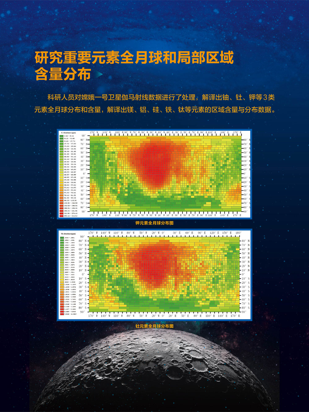 研究重要元素全月球和局部区域含量分布