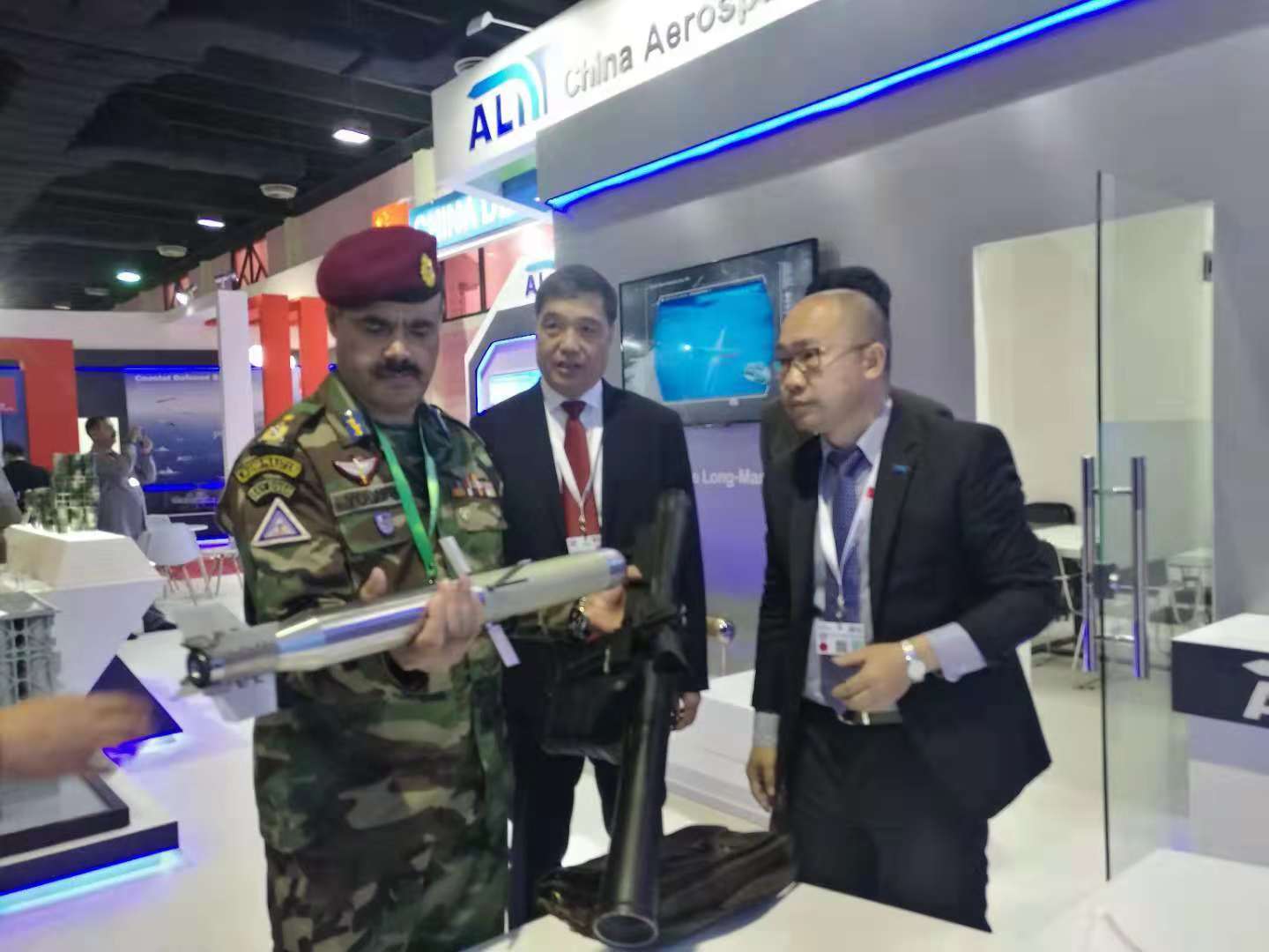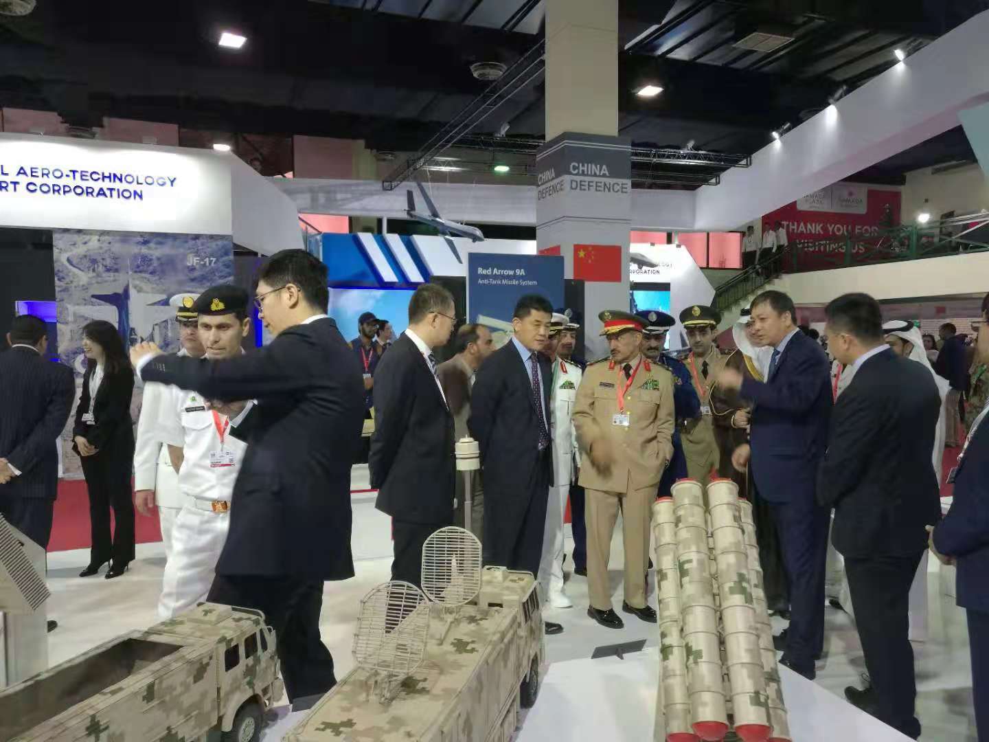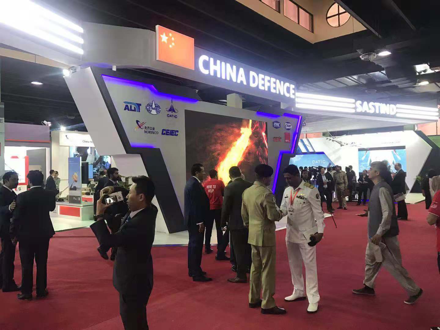 中国展团集合声、光、电等多种展览手段,重点展出了包括LY-80防空导弹武器系统、CM-501系列导弹武器系统、枭龙战斗机、翼龙无人机、ZDK-03预警机、VT4主战坦克、JARI-USV多用途无人作战艇、系列化常规潜艇及多款新型雷达和电子对抗作战系统在内的防务产品,受到多方关注。